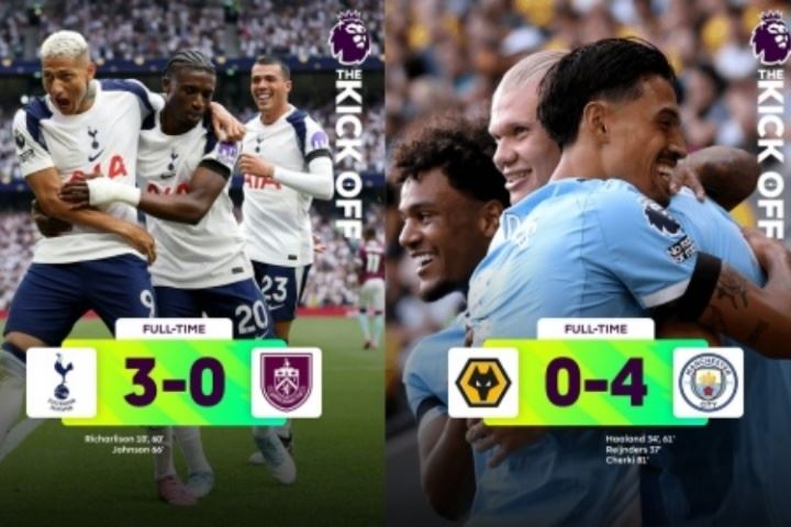 体育资讯08月18日讯 新赛季英超首轮基本结束,传统BIG6的比赛都已经打完,其中利物浦4-2伯恩茅斯、曼城4-0狼队、热刺3-0伯恩利、切尔西0-0水晶宫、阿森纳1-0曼联。