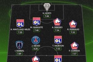 体育资讯9月2日讯 五大联赛迎来短暂休赛,whoscored也统计了法甲8月评分最佳阵容,里尔和里昂各4将入围。